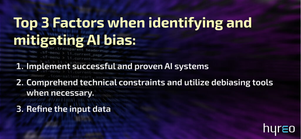 There are multiple approaches that can be implemented using AI tech to eliminate bias in hiring. Companies should take the first step in identifying limitations carefully when implementing such AI approaches. Leaders should recognize the limitations of the training data, models, and technical solutions to eliminate any kind of bias in hiring. For both technical awareness and to consider human methods to neutralize bias in machine learning, understanding the limitations will be highly helpful. There are a growing number of debiasing tools available that can supplement techniques to avoid AI bias. The advantage of such tools is that they can mitigate bias in AI for specific cases rather than cover a wide range of cases unnecessarily. Enterprises should consider ways in which AI itself can help against the risk of biased data.