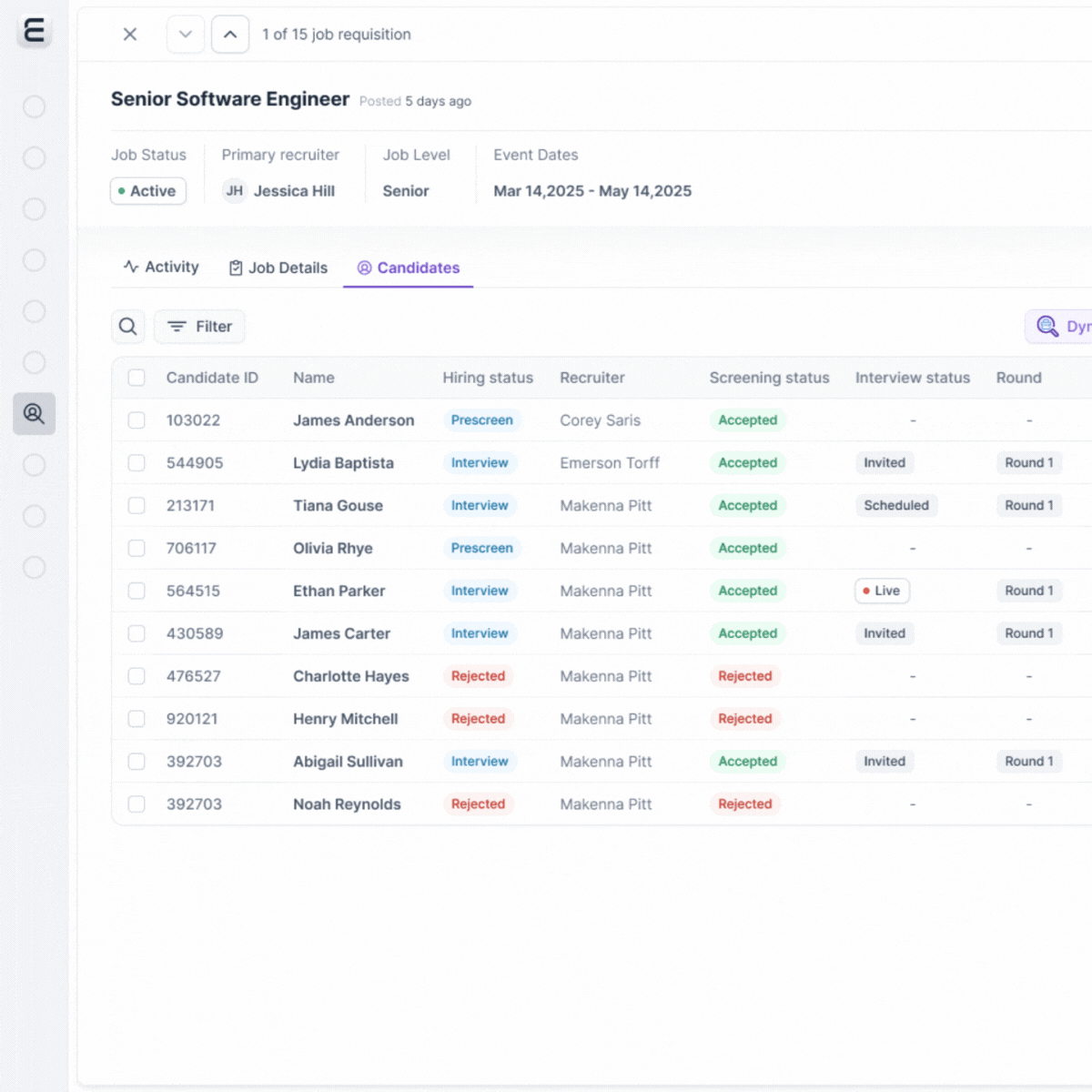 Automated, conversational screening through chatbots, saving time on manual CV reviews and phone screens.