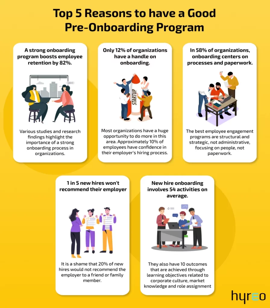- Pre-onboarding is the process of preparing new hires before their official start date and can significantly improve employee retention and engagement.