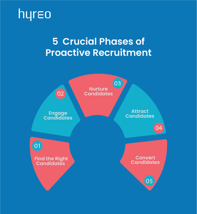 Proactive recruitment is identifying and attracting talent before the need arises. It takes place in five key phases: